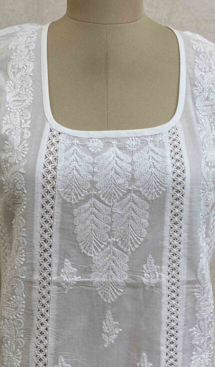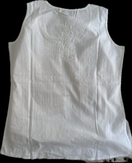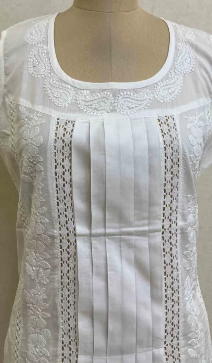 Women’s Lucknowi Handcrafted White Cotton Chikankari Top – HONC075680